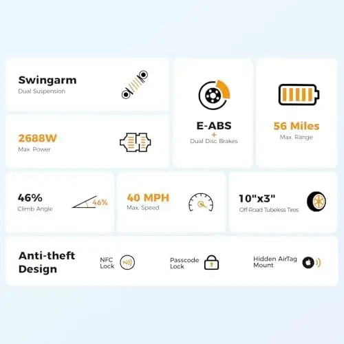 Brand ausom Color black Age Range (Description) Adult Special Feature Dual Motor, E-ABS + Front & Rear Disc Brakes, Foldable,