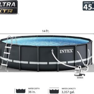 Intex Ultra XTR Frame 14′ x 42″ Round Above Ground Outdoor Swimming Pool Set with Sand Filter Pump, Ladder, Ground Cloth, and Pool Cover