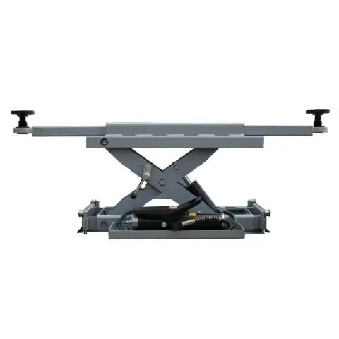 Atlas® RJ-6 has telescoping arms that can be extended over the runways of a four post lift. The double screw lift pads at the end of these arms can be positioned under the lifting points that are located over the runways of that four post lift. This rolling jack is equipped with expandable rail supports which adjust to fit between the runways of many different four post above ground lifts. These supports have a unique roller system that allows the rolling hydraulic jack to glide easily under the entire length of the vehicle.