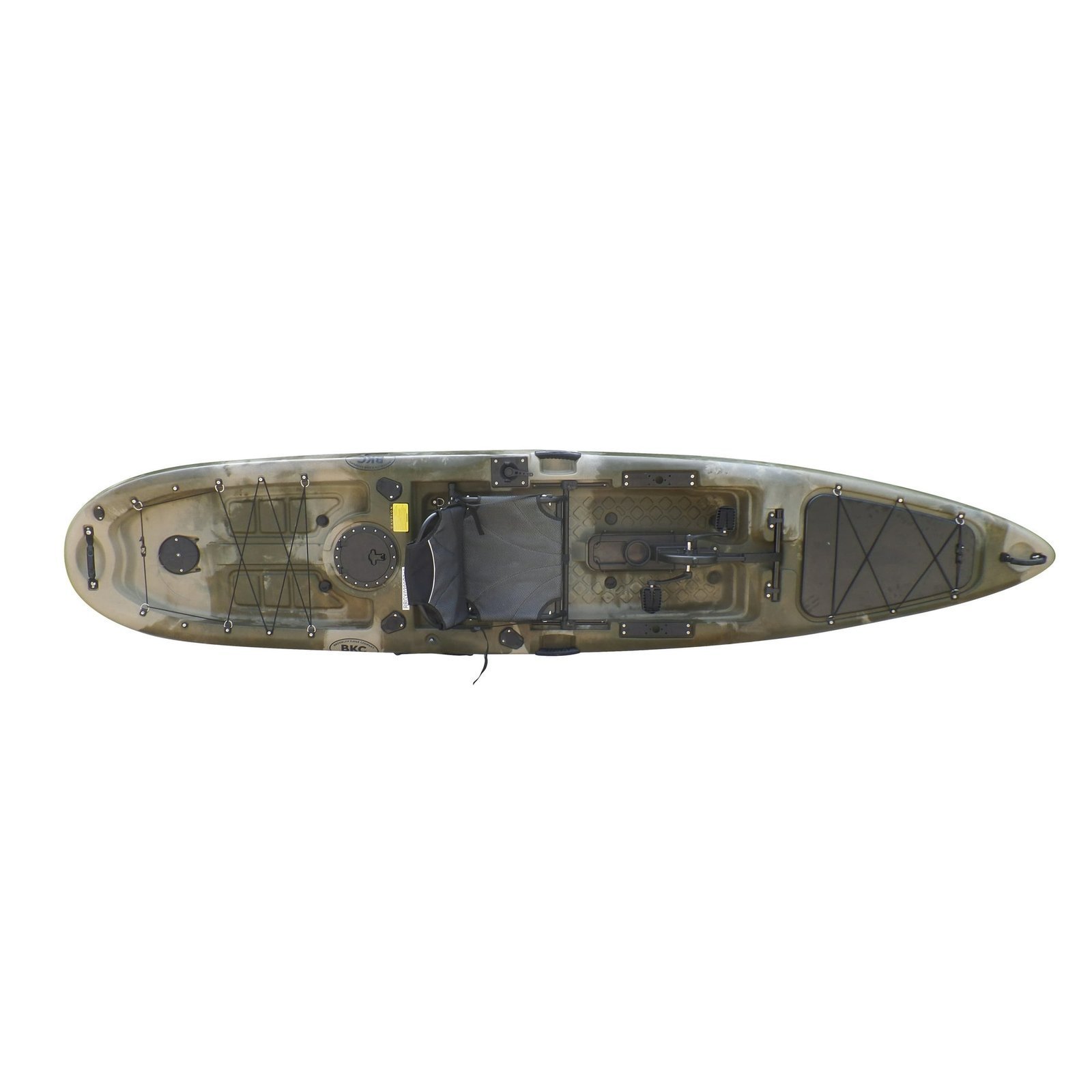 The Brooklyn Kayak Company BKC PK13 Pedal Drive Solo Traveler Kayak was created to cruise. This long, slender, stable kayak slices through all types of water at top speed, especially when you use the pedal-driven propeller and a trusty paddle at the same time. (You can also upgrade to a trolling motor for the ultimate easy speed or remove the pedal drive system for classic paddle-only performance.) The smooth, responsive pedals feature adjustable foot straps and keep the propeller whirling at speed, while the hand-operated rudder gives you excellent directional control with minimal effort required. BKC PK13 has a total weight capacity of 550 pounds, so you can load it up with gear, hop aboard, and set off for an all-day excursion or even a multi-day adventure. BKC PK13 ready to cruise at speed, but it’s also an ideal choice for the long-distance traveler. The Brooklyn Kayak Company BKC PK13 kayak features a spacious rear cargo area with bungee tie-down straps perfect for securing a cooler, tackle box, duffel, or dry bag, and watertight storage hatches built into the hull with dry bag inserts included. The bow also features bungee straps great for tucking mid-sized items like a raincoat or helmet. The chair of the Brooklyn Kayak Company BKC PK13 Traveler Kayak is built around a lightweight but sturdy aluminum frame and has a padded and supportive backrest and seat. It can be adjusted for comfort or to maximize your efficiency as you paddle, pedal, or fish. The kayak fisherman will also appreciate the vessel’s three flush-mounted rod holders, which can be used to keep a fishing pole out of your way as you travel or to keep a line in position in the water as you troll or still fish.