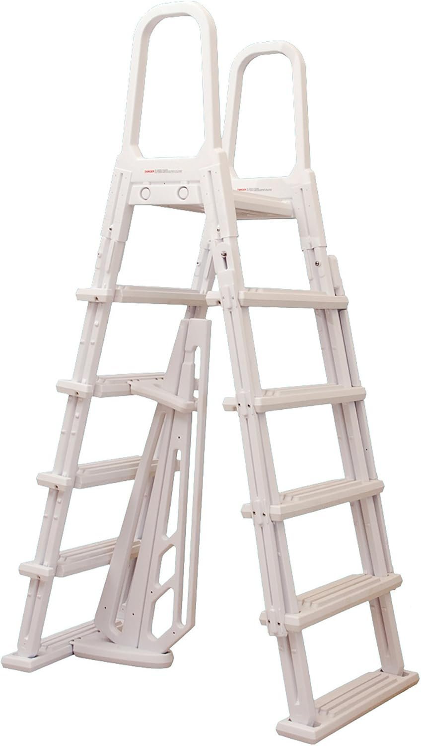 - Includes liner, pump and sand filter system, A-frame entry ladder, and wide-mouth skimmer