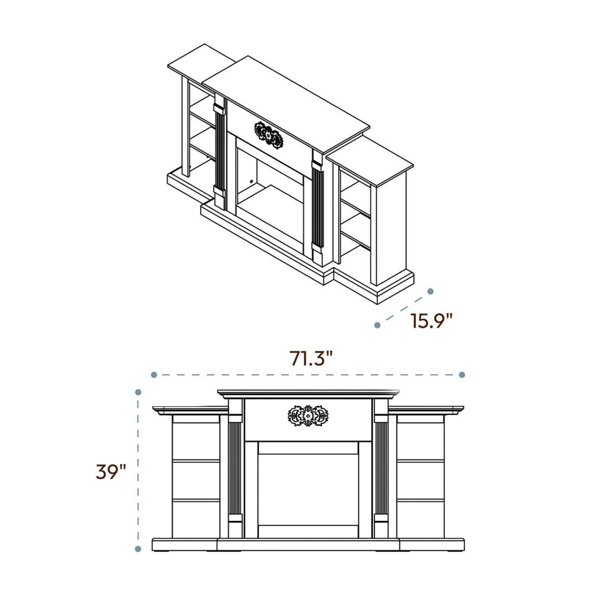 Electric fireplaces are an easy way to add warmth and character to your home. If you are looking for an multi-functional statement piece, the Sanoma Fireplace is perfect for you. Two side bookshelves balance the middle frame that hosts the fireplace insert. These shelves, along with the long mantel top, provide plenty of space for displaying books and decor. A Gothic floral applique is carved across the top of the fireplace, giving it a classic and traditional look. The clean lines, fluted pilasters, and crown molding are a few of the design details that add even more character to the frame. The multicolor LED insert produces 5,115 BTUs of fan-forced heat that quickly warms a 210 sq. ft. room. An enchanting flame display dances across the back of the firebox, creating movement that is sure to catch your eye. Embers of light glaze across the logs within, adding more depth to the realistic log display. With the Sanoma fireplace, comfort never looked so good.