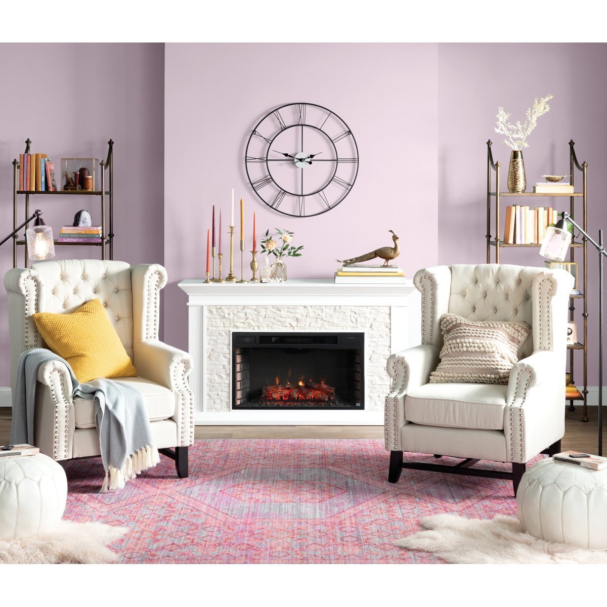 Create a cozy and classic environment in your living room layout or restful retreat with this electric fireplace, featuring an insert with adjustable flickering flames that can heat up to 400 square feet. Polyresin stone surrounds the center for a tastefully textured look, while a molded mantel, base, and sides made from manufactured wood round out the design with a traditional touch. As safe as it is stylish, this piece is protected by glass that remains cool to the touch.