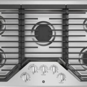 The GE 30″ Built-In Electric Cooktop (model JP3030DWBB) delivers reliable performance, a clean design, and easy-to-use knob controls. With four radiant cooking elements, including a powerful 9″/6″ dual element for flexible pan sizes, this cooktop makes everyday cooking simple and efficient. The smooth glass surface not only looks modern but also makes cleanup fast and easy.