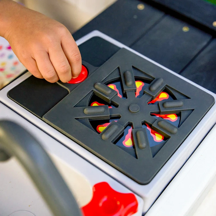 - Two-story clubhouse with built-in play kitchen sink, faucet and burner for role playing