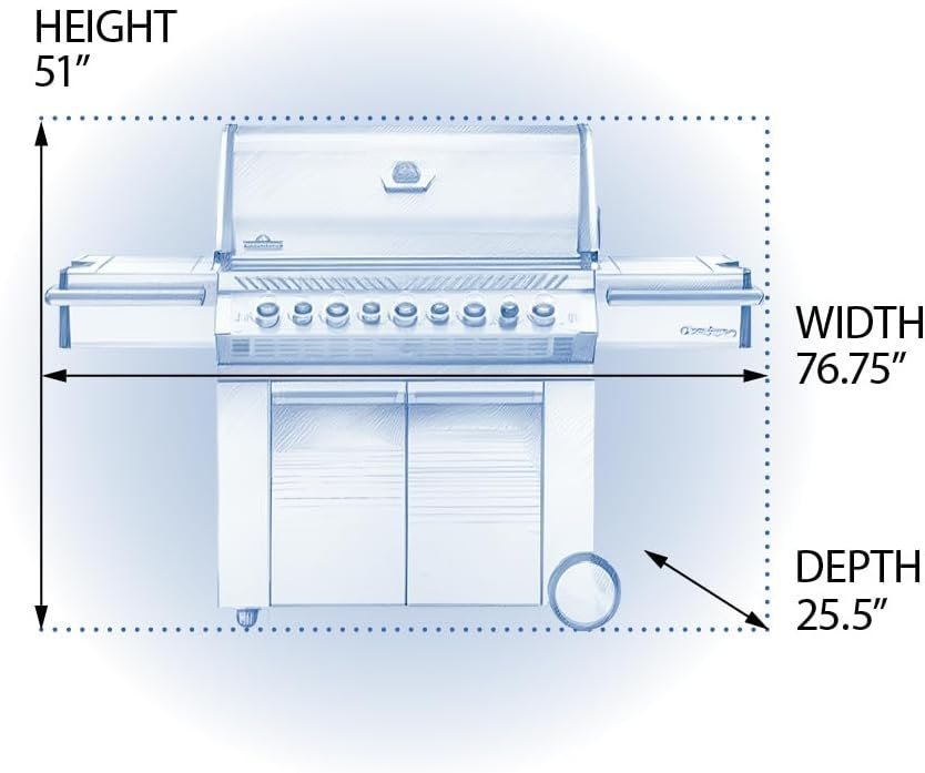 - 99, 000 BTU’s, 5 Stainless Steel Main Burners, and1140 In² Total Cooking Area