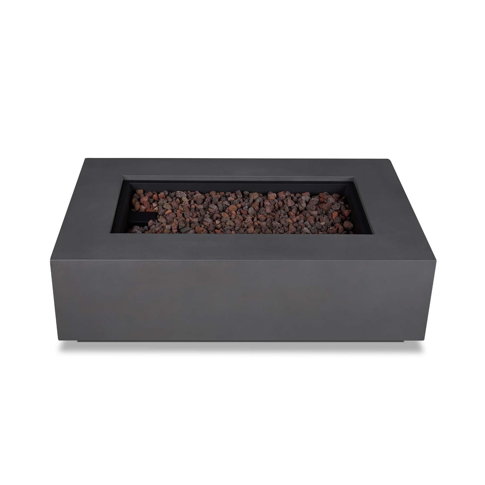 Make a stunning addition to your outdoor space with the clean, contemporary design of the Aegean rectangle gas fire table. Made of durable steel with a lightly textured finish, this outdoor fire table features a reliable push-button ignition and has adjustable flame height. Gas fire pit table with leveling feet, stainless steel burner, burner lid, lava rock, storage cover, propane hose with regulator and natural gas conversion kit are included. Providing 50,000 BTUs of heat, this outdoor propane fire pit can be converted to natural gas by a certified natural gas technician using the conversion kit. When not in use, transform this gas fireplace into a useful outdoor coffee table with the matching burner lid. Complete your patio set with the Aegean outdoor chair, loveseat, sofa and propane tank cover that doubles as a side table. Real Flame® gas fire pits are CSA certified and weather, sun and rust resistant.