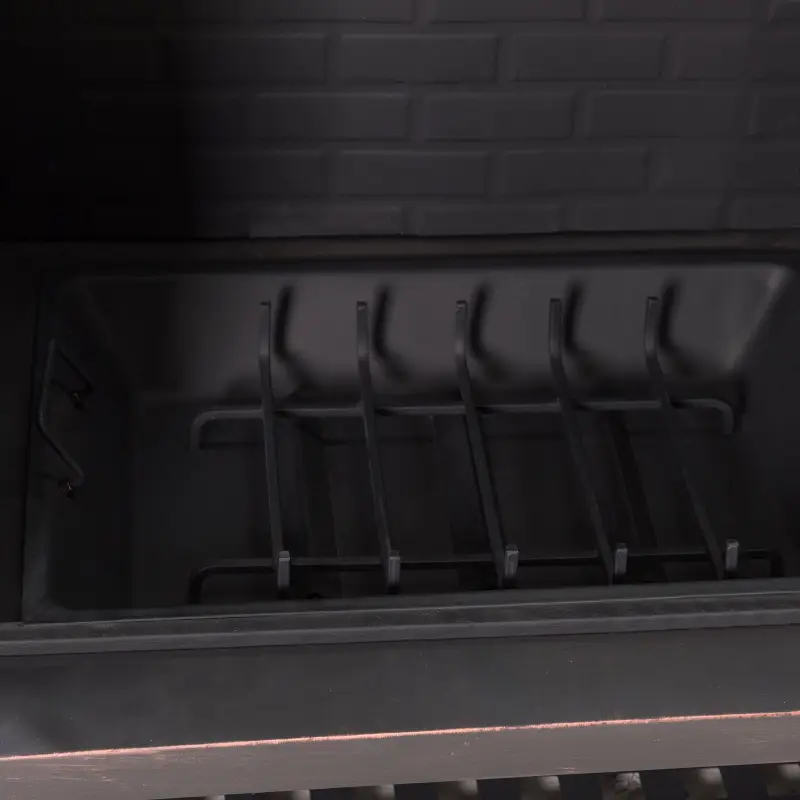 - A fire poker is provided to stir and adjust the coals and firewood.