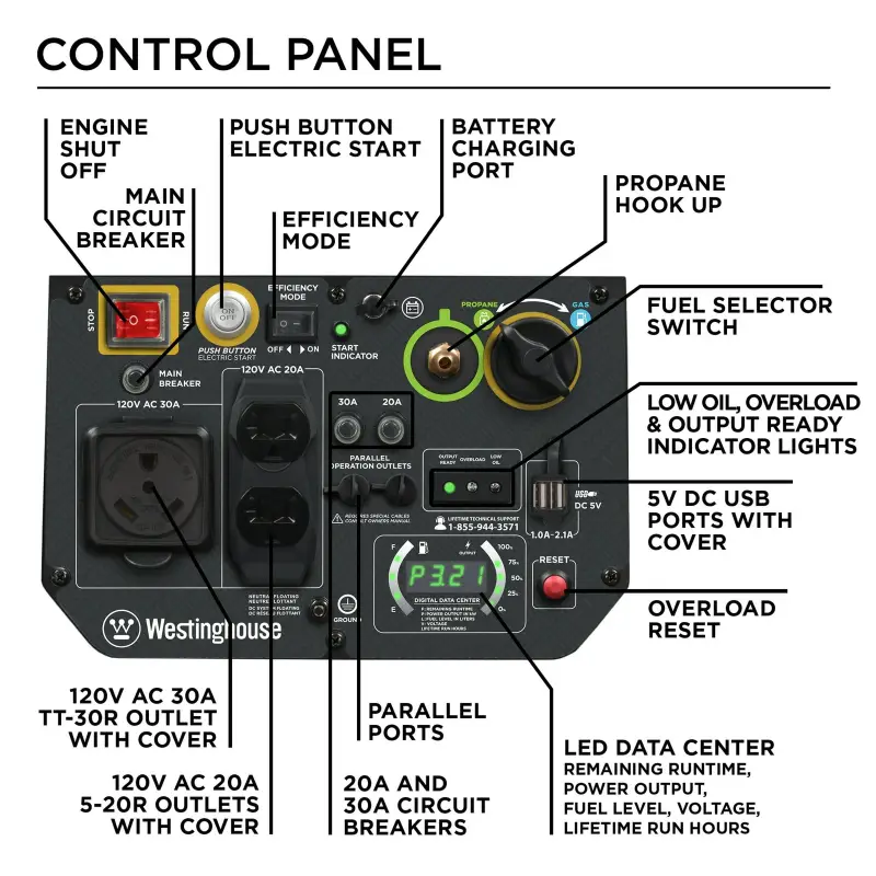 • All Westinghouse portable generators are functionally tested in the factory and may contain minimum residual oil and/or fuel odor